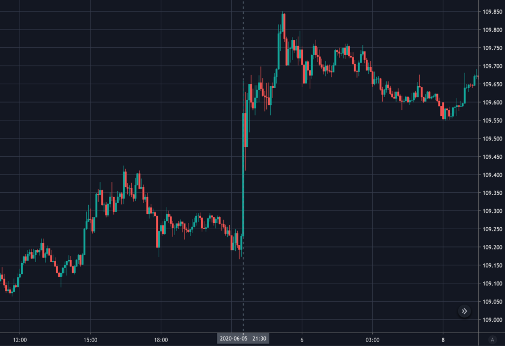 最も重要な経済指標のひとつといわれるけど何で重要かもイマイチわかってないので、調べつつ、2020年6月の雇用統計での発表に対するドル円の動きをまとめました。